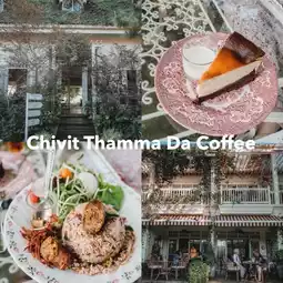 A retro cafe. The building imitates an old Thai-style house painted white. The surrounding area is decorated with flowers and trees, making it look pleasing to the eye. The price of drinks at the shop ends with the number 6 because it is the shop's lucky number.