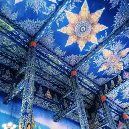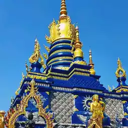 Wat Rong Suea Ten - the Blue Temple, is a stunning temple located in Chiang Rai, Thailand. This temple is characterized by its striking blue exterior and intricate golden detailing. Inside the temple, there are many beautiful murals depicting Buddhist mythology and contemporary scenes.