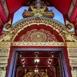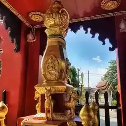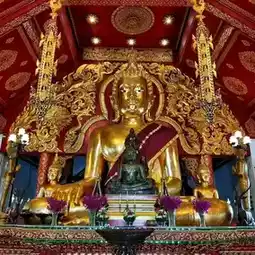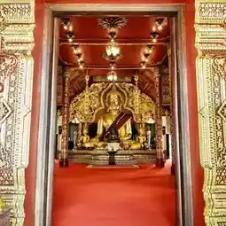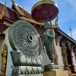 Important religious objects and permanent objects of the temple include: 🏰 The temple, newly built in 2534, is a modified Lanna architecture. The stairs leading up are made in the shape of Makara spitting a naga. There are statues of the lion king and a pair of Tung Kradang, the principal Buddha image made of stucco in the Mara-Vijaya posture, originally in the Tai Khun art style. Later, it was renovated by building over the original one in the Lanna art style, covered with gold leaf all over the body, called "Phra Chao Phet Mongkhon Muni". 🛕The pagoda was originally the Pancha Mahathat pagoda. In 1996, an elephant-supported pagoda was built, decorated with niches with many Buddha images. The base of the pagoda has elephants surrounding it. The base supports an octagonal bell-shaped body, high base, small bell-shaped body. 🛕The navel pillar of the city was built during the reign of Phraya Rattana Anekdin (Chao Un Ruean).