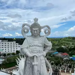 Our last stop is Wat Huai Plakang, a temple home to a huge statue of the Goddess of Mercy. Standing at 69 meters tall, this statue is the largest statue of the Goddess of Mercy in Thailand. The temple also has a beautiful 9-storey pagoda and a large hall with beautiful murals and sculptures. The panoramic view from the top of the pagoda is breathtaking, offering a clear view of the surrounding landscape. The peaceful and calm atmosphere of Wat Huai Plakang makes it a great place to contemplate and meditate.