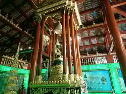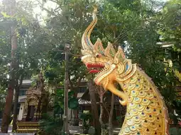.. Originally named Wat Pa Yia or Wat Pa Yie (in Pali, Yarukkhawanaram), due to the large number of Yia trees within the original temple grounds, it is a temple of significance. In 1977, the chedi of Wat Pa Yie collapsed on its own (only the royal commentary and the legendary chants of the Emerald Buddha, composed by King Rama IV, mentioned that the chedi was struck by lightning), revealing a plaster Buddha image gilded with gold leaf. It was then placed in the vihara of Wat Pa Yie. Later, the plaster around the Buddha's forehead flaked off, revealing the emerald core.