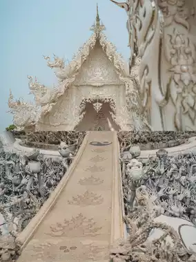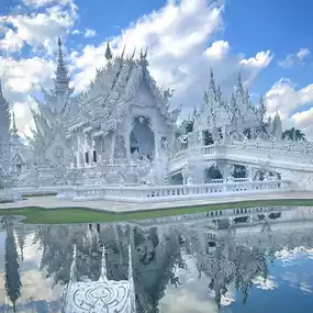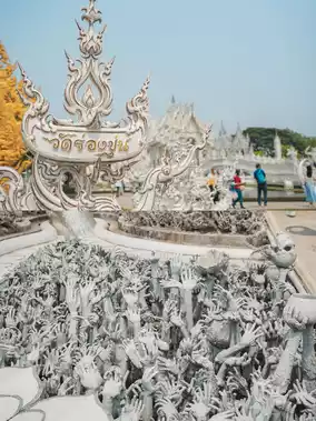 Wat Rong Khun in Chiang Rai, northern Thailand. Also known as the White Temple. It is a pure white and distinctive temple that is called "The Temple of Hell"☁️