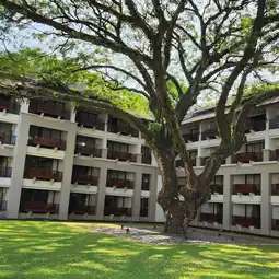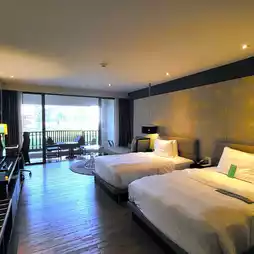 Le Méridien Chiang Rai Resort is located on the banks of the Kok River, covering an area of 26 acres near the city of Chiang Rai. The resort features 159 rooms, ideal for weddings, banquets, meetings, or seminars, all designed in a contemporary style. Each room has a large private balcony offering stunning views of the Kok River and the surrounding nature, including the hotel's iconic twin rain trees. The resort is fully equipped with amenities such as a swimming pool, three restaurants and bars, Parvati Spa, and a fitness center.