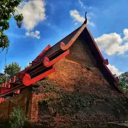 🏰 The royal chapel is made of brick and mortar. It has a rectangular plan. It was reinforced at the front twice. Large stones were used as foundations under the pillars. This is evidence showing the remaining construction techniques of the Chiang Saen era. There is only 1 large round pillar left.