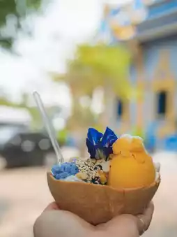 The standard gourmet food at the Blue Temple is the blue ice cream sold next to the main hall 🍨🧊 It has butterfly pea flowers on it and looks cute 🫐🥰