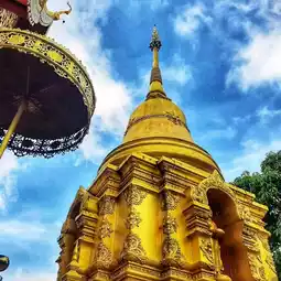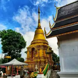 🛕 The pagoda is an old bell-shaped pagoda in the Lanna style. The twelve-angled chedi is unknown when it was built. Currently, a new chedi has been built to cover it. The chedi's spire is a five-tiered local style with a garland base supporting a gourd-shaped bell and niches with standing Buddha images in all four directions.