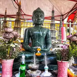 🙏 On Songkran Day, the temple invites Phra Phuttha Si Ming Mongkhon to be enshrined under the Sala tree for people to bathe and pay homage.
