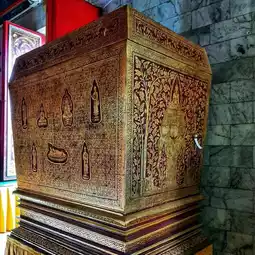 🙏 Inside the chapel, there is also a Lanna-style pulpit, lacquered and gilded, and a cabinet for storing palm-leaf manuscripts in the Lanna style, which is very old.