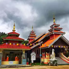 ๐ฐ The multi-tiered vihara showcases Tai Yai art, with ancient ceiling paintings illustrating the zodiac animals according to Tai Yai, Burmese, and Tai Khun beliefs. Inside, there are three principal Buddha statues in Tai Yai style.