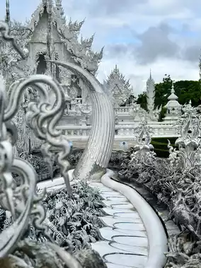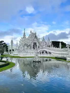 The White Temple is a stunning and contemporary Buddhist temple known for its unique white exterior and intricate design. It was created by artist Chalermchai Kositpipat and is a significant cultural and tourist attraction.