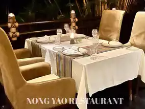 🥂 มีร้านอาหารสุดหรู บริการอาหารเช้า และมื้อหลักๆ ที่ ห้องอาหารนงเยาว์ “Nong Yao Restaurant" เสิร์ฟอาหารไทย ลาว พม่า และตะวันตก ตกแต่งในบรรยากาศคลาสสิค โดยสถาปนิกชื่อดัง Bill Bensley สมฐานะความ Luxury คือดีในทุกๆ ด้าน อยู่ท่ามกลางป่าดิบเขา บรรยากาศจะมืดๆ หน่อยแต่แฝงด้วยความอบอุ่น และโรแมนติก