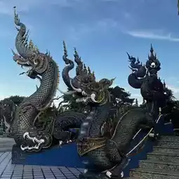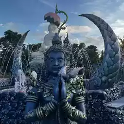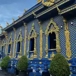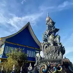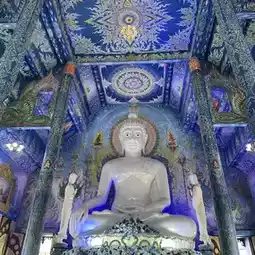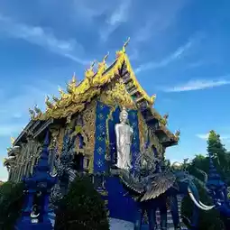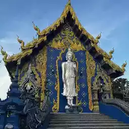 Wat Rong Suea Ten is a temple with a blue tone, using blue and sky blue colors contrasted with gold both inside and outside. It's absolutely stunning, incredibly beautiful!