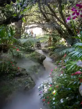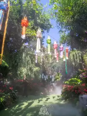 Lalita Cafe is a cafe located not far from Wat Huai Plakang. It can be said that it is a pass-through. The shop is located in Mueang District and on the main road, so it is not difficult to find. The interior is beautifully decorated. The fog curtain is always open, making the area look shady and not hot during the day. It looks like a fairytale Himmapan forest. The highlight here is a large waterfall inside. The entire walkway is covered in fog. There are flowers on both sides and statues of fairytale animals on the waterfall curtain. The walkway is not very wide. The entrance fee for adults is 60 baht and children are 40 baht. You can use coupons to buy food and drinks in the cafe.
