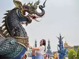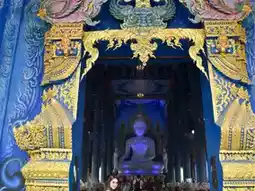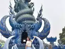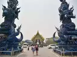 In Chiang Rai, there is another unique and beautiful temple, Wat Rong Suea Ten. This temple is unique in that the entire temple is blue, contrasting with the beautiful gold color.
