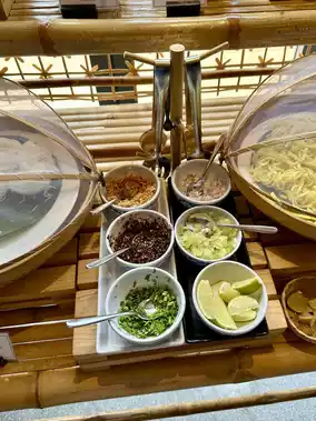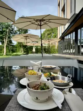 🌾 The food is delicious, the quality of the food is good, the food line is complete with all types of food with a lot of variety, and there is a special "Northern food" with a humorous tone, such as Khanom Jeen Nam Ngiao, Khao Soi Gai, Sai Ua, Nam Phrik Num, Nam Phrik Ong, Kap Moo, boiled local vegetables, Khao Niew Piak Longan, etc.
