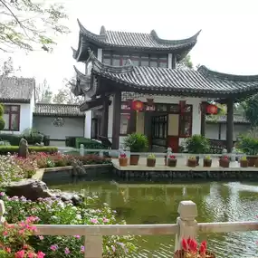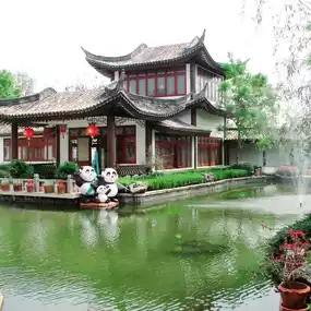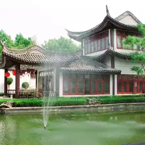 📸📸Inside the center, there is a Suzhou-style water park in the center, with fountains and willow trees on the side of the garden, giving an atmosphere like being in China. Walking around to see the architecture and exhibitions is very enjoyable.