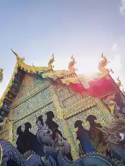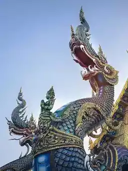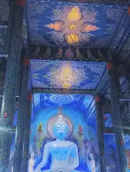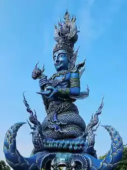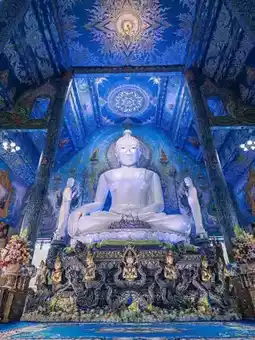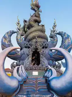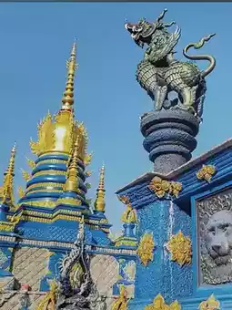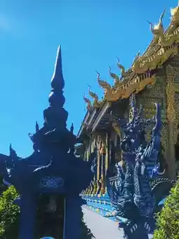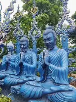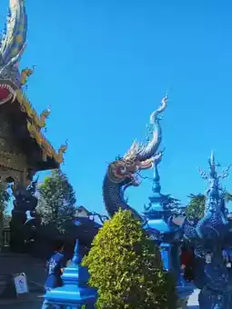 Another important Buddhist tourist attraction in Chiang Rai Province is the blue church and exquisite carvings. Inside is the large pearl-white Phra Phuttha Ratchamongkhon Bodi Trilokanath, decorated with beautiful murals telling the story of the life of the Buddha. Around the temple outside are various statues that are equally beautiful. In front, there is an archway built as the Naga King, Thao Mucalinda, and Pu Sri Suttho, using the same color tones as the church inside. It is considered the most beautiful and unique contemporary art. Anyone who comes to Chiang Rai, stop by to worship and make merit.