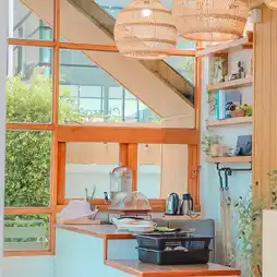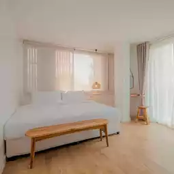 Minimal style accommodation in the heart of Chiang Rai, located at the entrance of Lan Muang Village Market (there are so many places to eat because as soon as you get off the hotel, you will find tourist attractions, cafes, and full of barbecue and shabu). This place has only 3 floors. It is a small, cute, minimalist hotel with lots of photo spots from the entrance to the room. I just found out that a 3-story hotel has a "glass elevator". This is the best. You can rest assured that you don't have to carry your stuff up the stairs. The room is very clean, fully equipped, and the best thing here is that there is a key card security system for every room. Everything is very premium.