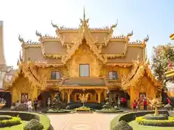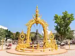 - Artistic Bathroom, a bathroom building decorated in bright gold, reflecting the world in its beauty and perfection, clearly contrasting the white color of the Ubosot.