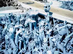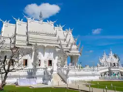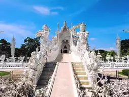When you arrive in Chiang Rai, Wat Rong Khun is one of the landmarks you must visit. This temple stands out with its unique beauty, designed and built by the national artist Chalermchai Kositpipat.