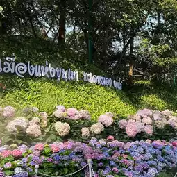 Tung and Khom Garden is located in the heart of Chiang Rai. Parking is available on the side of the road. It is under the care of Chiang Rai Municipality. Every year during the winter, there is a Chiang Rai Flower Festival with musical performances in the garden to stimulate tourism.