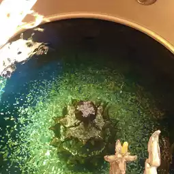 • Stop to admire the beauty of the white church and the golden bathroom, as beautiful as heaven, and go to pray at the prayer well. Behind the temple is also a waterfall and a simulated cave.