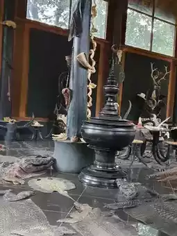 Baan Dam Museum, created by National Artist Thawan Duchanee, is situated on over 100 rai of land. The museum features more than 40 traditional Lanna-style buildings, including uniquely shaped stupas, all designed by Thawan himself. Inside, the museum showcases tens of thousands of valuable artworks, including Northern Thai crafts such as wood carvings, ancient lacquerware, and exquisite silverware. The collection also includes items from China, Japan, India, Tibet, and Europe, as well as various animal hides and horns, such as bear, buffalo, and tiger skins.