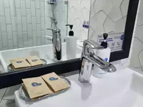 : All materials and equipment are new and of high quality, such as the shower head from the Hafele brand, the Tefal hot water kettle, etc.