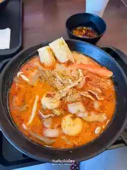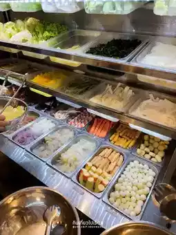#triptravelchina Mala Tang Chiang Rai branch is a self-service Mala restaurant in a small shophouse near an intersection in the city center. The space inside is quite limited, with a capacity of about 5-6 tables. There is a zone for customers to choose their own ingredients, including vegetables, meat, meatballs, and seafood, and then weigh them for 39 baht per 100 grams, which is quite cheaper than in Bangkok.