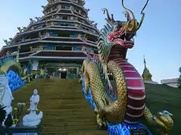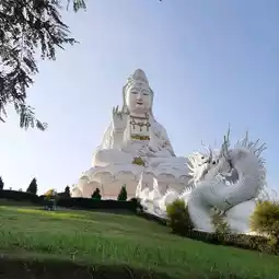 .. There is also a white chapel and a large white Guanyin Bodhisattva statue that is 69 meters high, or almost as high as a 25-story building. Inside the statue, there is an elevator that allows you to go up and see the view of Chiang Rai.