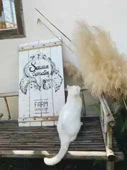The specialty does not end there because there are cute, chubby white cats here to add to the chill. Anyone who wants to relax and chill, sip tea, take beautiful pictures or play with cats must check in here.