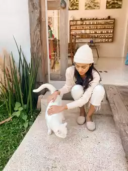 Sip tea, play with cats, it's like being in a dream! At heaven on earth