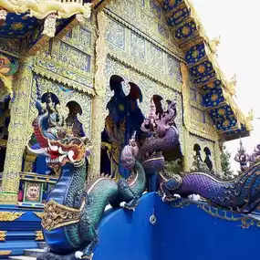 Wat Rong Suea Ten is a beautiful and striking temple located on the banks of the Kok River, not far from Chiang Rai city.