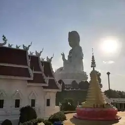 🙏🏽 A large Bodhisattva Guan Yin statue, 69 meters tall with 23 floors, accessible by elevator. From the 22nd-23rd floors, you can enjoy a beautiful view of Chiang Rai.
