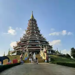 🏕 Wat Huay Pla Kang was established in 2001 by the villagers of Huay Pla Kang as a monastery. In 2005, Phra Ajarn Phob Chok Tissawongso came to practice Dharma and began building monk's quarters, sermon halls, dining halls, and pagodas. Later, in 2009, the National Office of Buddhism officially declared it as Wat Huay Pla Kang.
