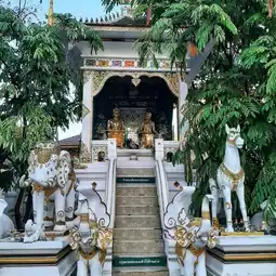 ๐ The chapel is in the Shan art style combined with the Lanna chapel style. The interior is decorated with carved patterns, lacquered, and gilded. There is the principal Buddha image, Luang Pho Phra Si Ming Muang, a molded Buddha image in the Chiang Saen art style, Singh 1.
