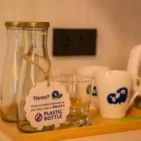 But what I really like is that the hotel is environmentally friendly and does not use plastic. There are glass bottles of drinking water and you can refill them