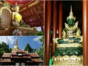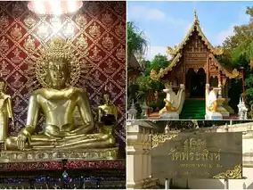 📍 Wat Phra Singh, worship the Phra Buddha Sihing And see the carvings of the doors of the chapel, the earth, water, wind, and sky, made by Ajarn Thawan Duchanee