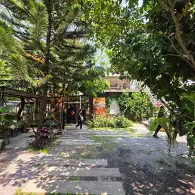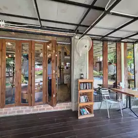 It is a cafe located in the Krirk Rice Mill. It has a shady atmosphere and is decorated in a loft style. There are various facilities such as multiple seating areas, a swimming pool, a children's play area, a work corner, a meeting room, and a workshop area. It serves food, drinks, and bakery products made from rice at affordable prices with good taste and convenient parking.