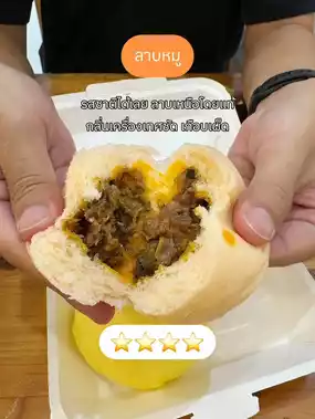‘Pan Pao’, a steamed bun shop near the Chiang Rai clock tower, has steamed buns with northern Thai fillings, including Khao Soi Gai, Nam Phrik Ong, Larb Moo, and Sai Ua.