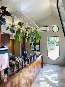 MUUSE cafe x bar is located in Chiang Rai city, offering a beautiful and cozy atmosphere. Situated right in front of Pan Kled Villa Eco Hill Resort, this cafe and bar is perfect for unwinding and enjoying the serene surroundings.