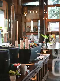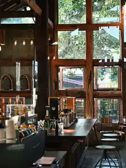• The cafe is housed in a large wooden building, offering a peaceful ambiance surrounded by nature, perfect for relaxation and photography.