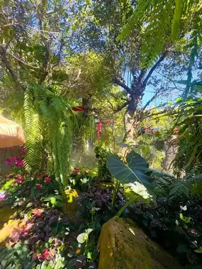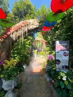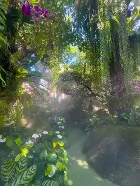Inside, the vibe is cozy and Instagram-ready, with orchids, twinkling lights, and moss-covered trees setting the scene. The menu offers a variety of coffee, tea, and Thai-inspired dishes, though vegan options are limited. Service is friendly, and the food is tasty, with generous portions that won't break the bank.