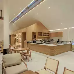 • The interior decoration emphasizes the use of natural materials such as wood and hand-woven fabrics to create a warm and friendly atmosphere.