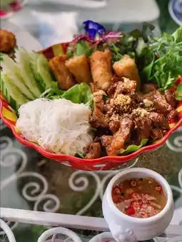 • Khao Pad Num Chiang Rai: Fresh sausage fried rice Served with Nam Prik Num, boiled eggs, pork rinds, shredded pork and fresh vegetable salad
