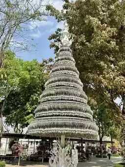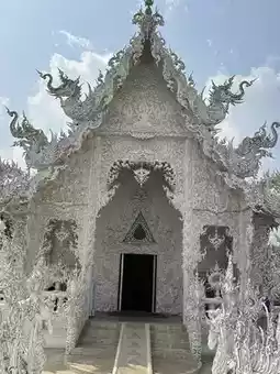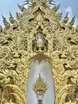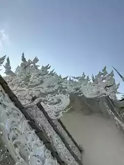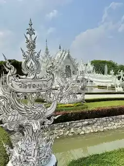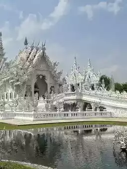 If there's a place that can transport you into a world of art, belief, and beauty all at once, it’s Wat Rong Khun by the visionary Chalermchai Kositpipat! The dazzling white temple gleams under the sunlight from the very entrance, like a world straight out of imagination. The bridge stretching over the crystal-clear water symbolizes the journey from the 'mundane' to 'nirvana'—and no one can resist stopping for a photo because it’s surreal and breathtaking! Every detail, every corner of the temple is not just beautiful but also a contemporary expression of art and dharma. From deities to dragons, and even modern-day heroes and icons subtly hidden in the murals—it’s innovative, profound, and deeply meaningful. This is not just a temple; it’s a 'living outdoor gallery' that seamlessly blends faith and creativity in a way that’s truly one of a kind. The surrounding area is clean and peaceful, featuring an art center, chic souvenir shops, and photo spots so stunning they’ll fill up your memory card in no time! Don’t underestimate what a temple can offer—Wat Rong Khun is proof of how powerful the combination of art and faith can be!