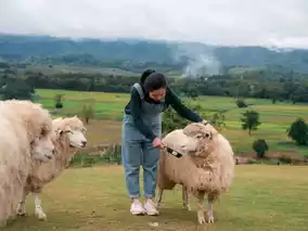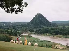 #Rainy season attractions 🐑 Sheep farm and beautiful cafe #Chiang Rai 𝐀𝐁𝐎𝐍𝐙𝐎 𝐘𝐚𝐦𝐚 𝐌𝐢𝐭𝐬𝐮 Don't miss the location when you come to #VisitChiangRai. Come play with fluffy sheep, feel good, good atmosphere, have coffee, beautiful 360-degree view, next to the river. If you come in the evening, it will be great. You can see the sunset, it's great. It's also close to Chiang Rai city.