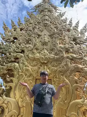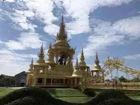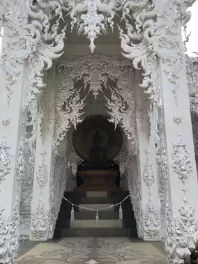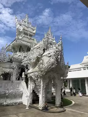 The blend of heaven 🪽 and hell ❤️🔥 in this white world is a photogenic spot 📸. Alongside the path you walk, you'll see depictions of hell (those who have strayed from the path) crying out for help ☠️. You will walk straight towards the heavenly world 🚶. Thai traditional culture and art are expressed in a pure white and highly creative design by an artist from Chiang Rai 🤍💞.
