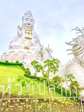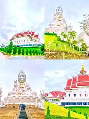 Wat Huay Pla Kang, located in Chiang Rai Province, is a stunning Buddhist temple renowned for its magnificent white Guan Yin statue. Standing approximately 90 meters tall, the statue is easily recognizable even from afar and serves as the temple's iconic symbol. The temple also features a nine-tiered Chinese-style pagoda and vibrant carvings, which are among its highlights. Visitors can immerse themselves in the serene and sacred atmosphere while experiencing the fusion of Buddhist culture and art.