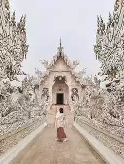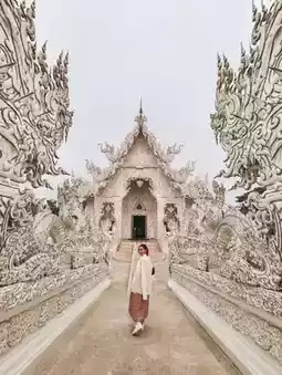 Visiting the White Temple (Wat Rong Khun) in Chiang Rai felt like stepping into a surreal dream 🤯🕊️ This place isn’t just a temple—it’s an art masterpiece! Everything is blindingly white, with mirrored glass pieces that sparkle under the sun. You can’t help but just stare in awe 🏯✨